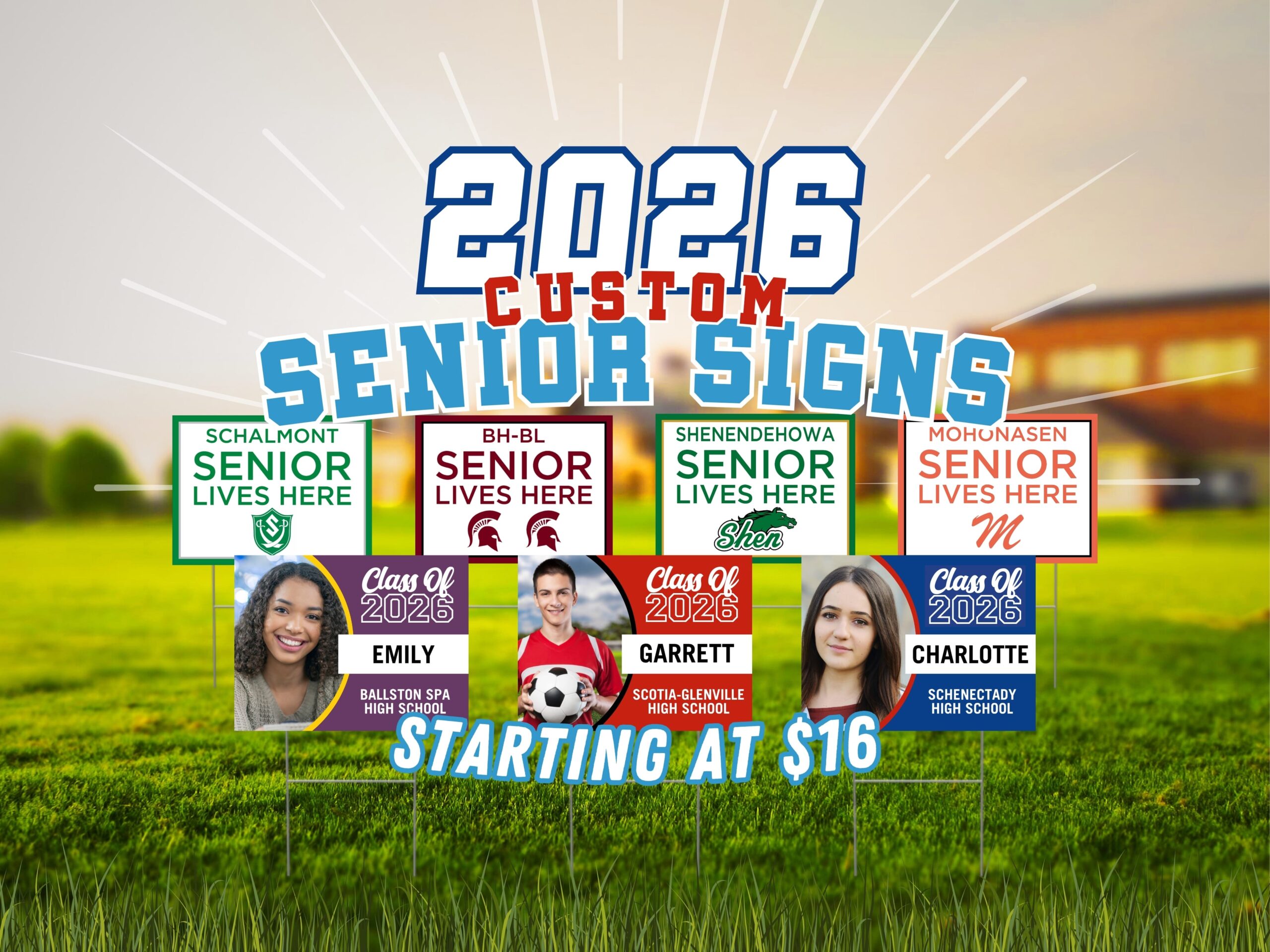 Whether you’re a proud parent, grandparent, sibling, or friend, our Senior Signs are a must-have for your front lawn! Order yours today and make your graduate feel extra special as they embark on their next chapter. Congratulations to the Class of 2026!